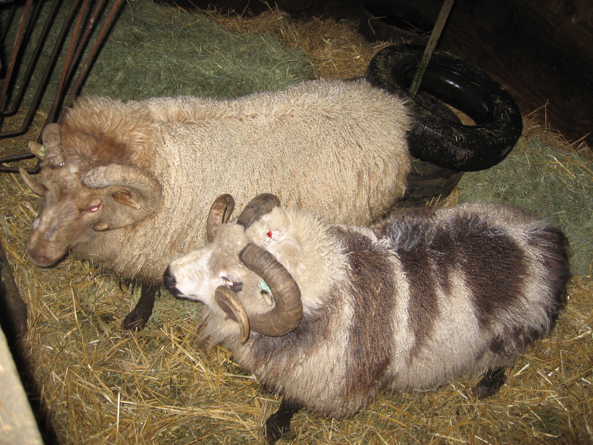The spotted ram Lewis has given us a couple of spotted rams. I am always hoping for more. We’ve had him a 4.5 years now. I love his fleece- you get a nice variegated yarn from it, and he has striped horns too.