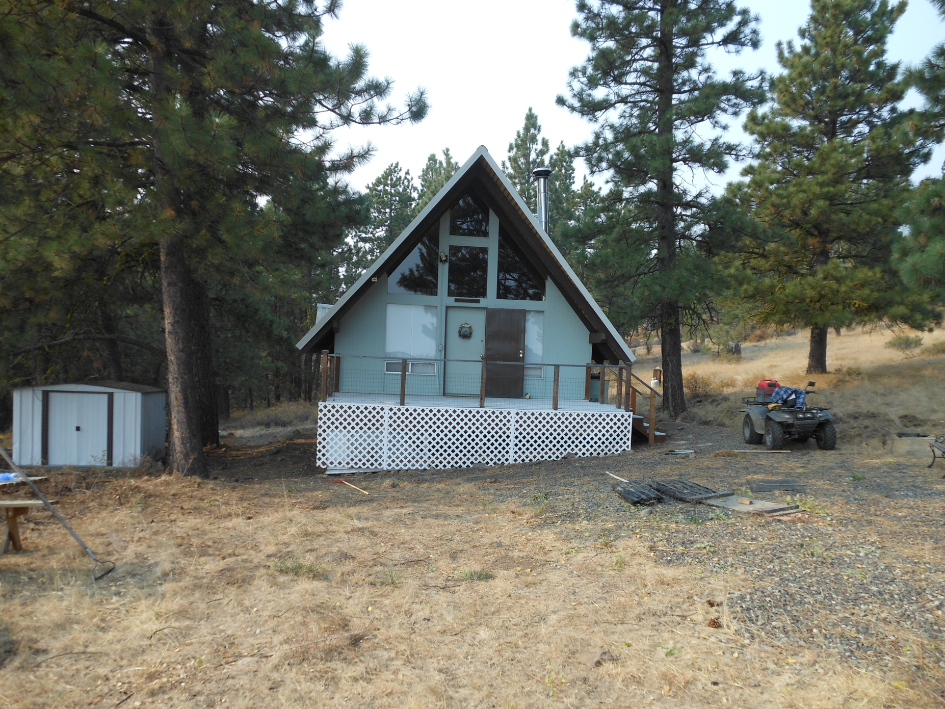 Yesterday we visited the Table Mountain Fire in an attempt to save my father’s cabin. The fire is about one mile away from it. So we trimmed the branches 6 feet up the trees, cleared brush, moved branches and firewood away from the cabin and scattered them, raked needles away and wet the ground around it. Here is the cabin after our efforts.