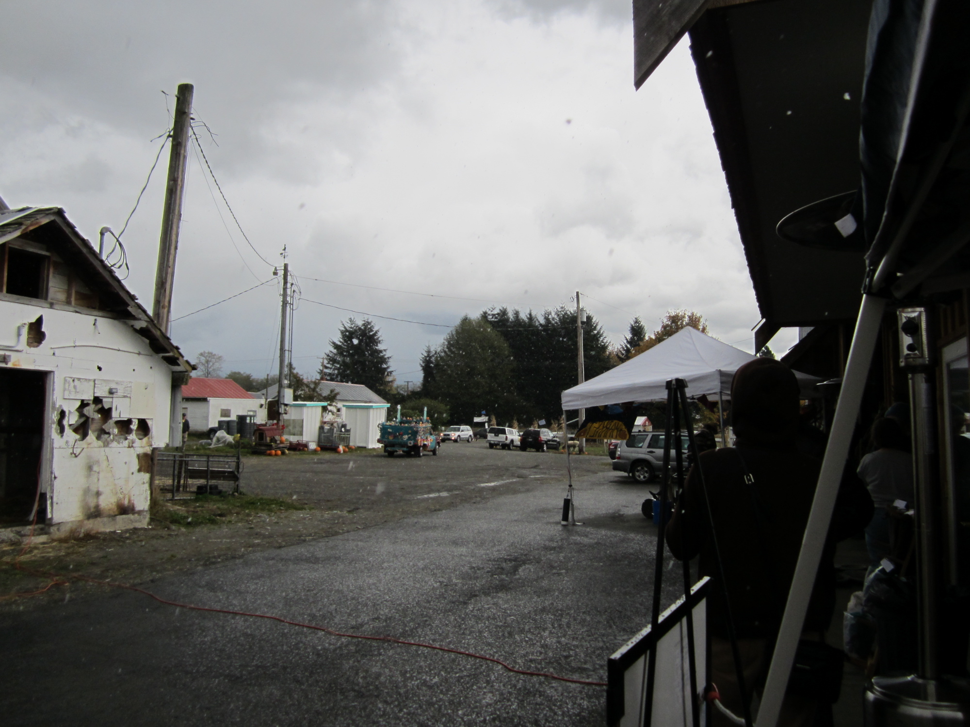 The weather was cold but mostly dry. There was slight sprinkling in the afternoon and a brief hailstorm pictured below. But overall a very nice day and a good turnout for an old-fashioned harvest celebration.