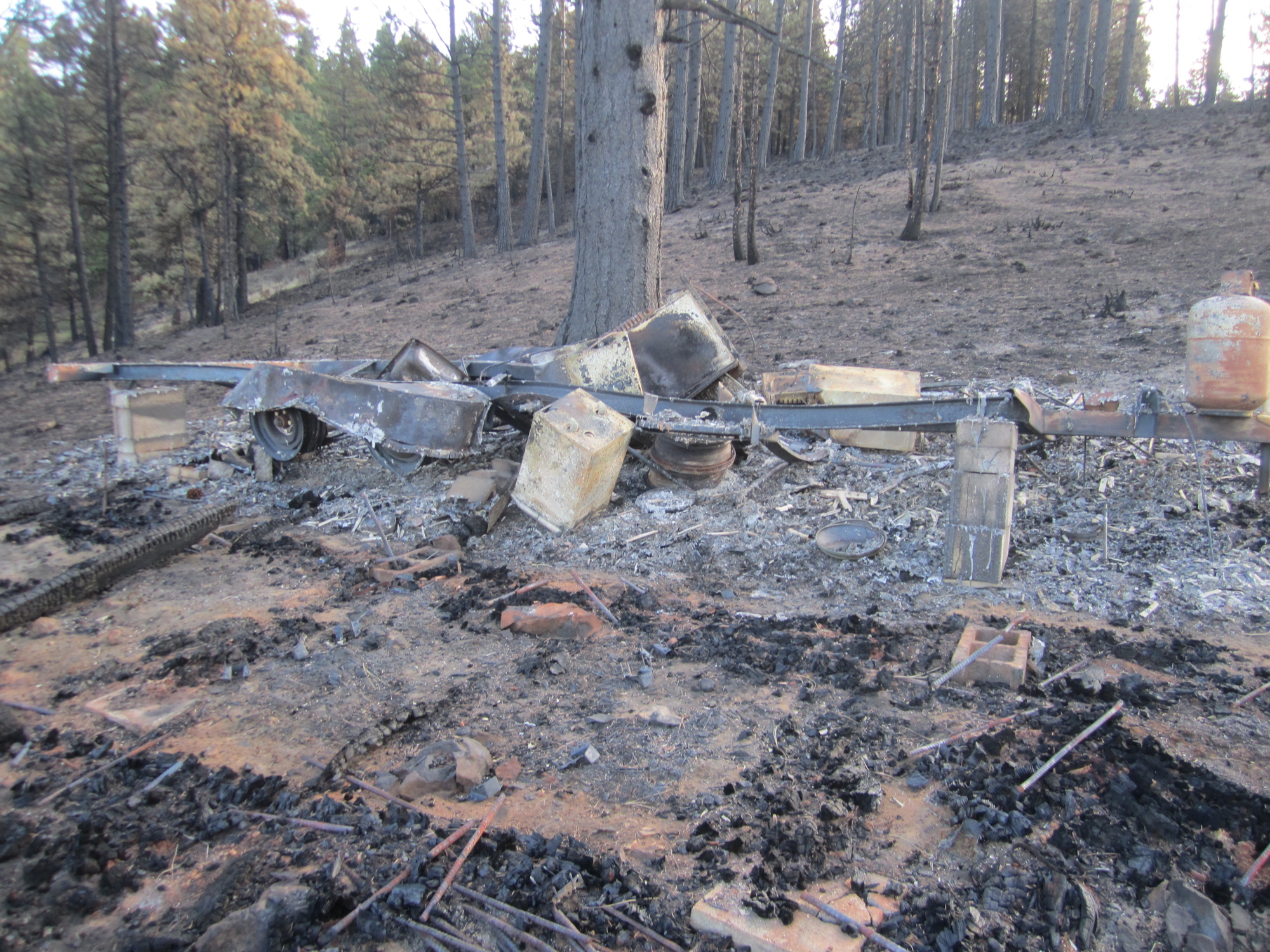 This is a photo of the foundation of the cabin. It is weakened by the heat and not usable again.