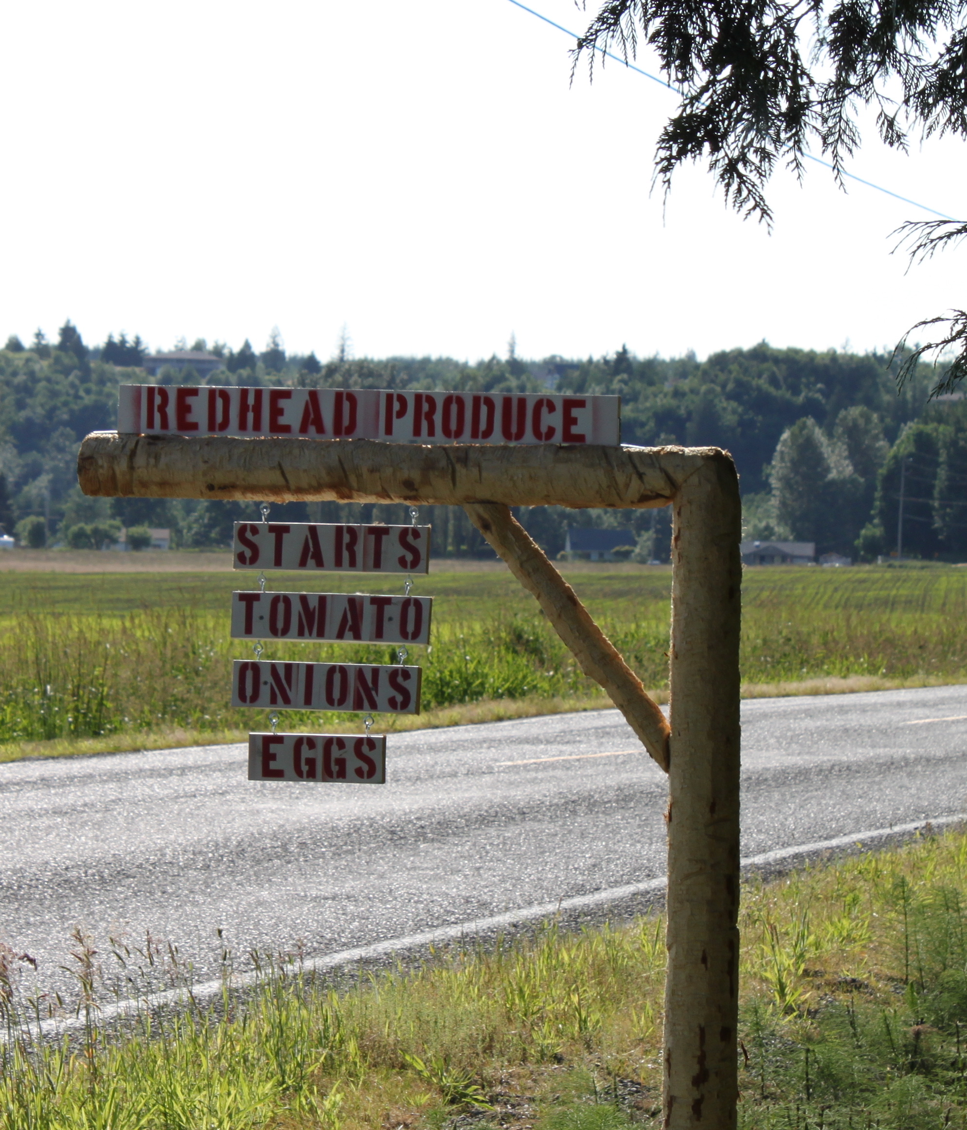 We have seasonal fruits and vegetables for sale at our farm stand as well as eggs.  We are located at 19849 Prairie Road near Sedro Woolley, WA.